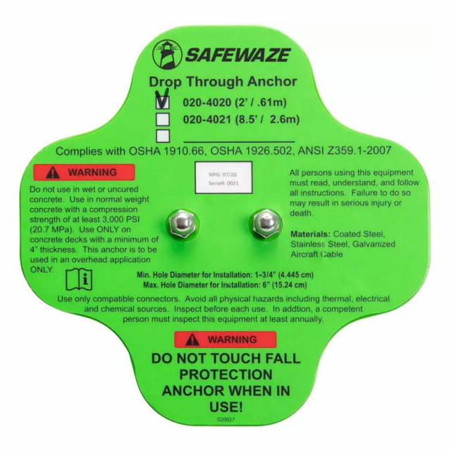 Safewaze 020-4021 8.5' Drop-Through Cable Anchor