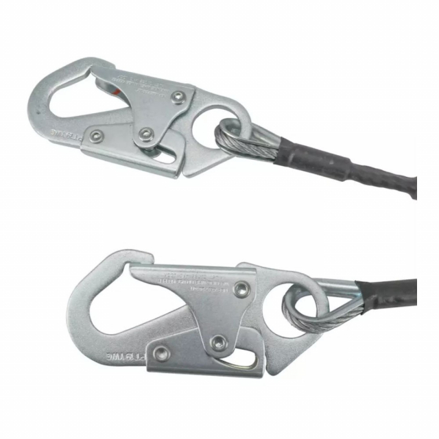 The Leading Edge 6' Energy Absorbing Lanyard provides edge protection to users of any weight class, working at both 6' and 12' free fall heights. This versatile all-in-one solution is built with coated 1/4" aircraft grade steel cable, specially engineered tear webbing to reduce fall arrest force and ballistic absorber cover. Includes dual leg construction, protective label cover and forged steel hooks.