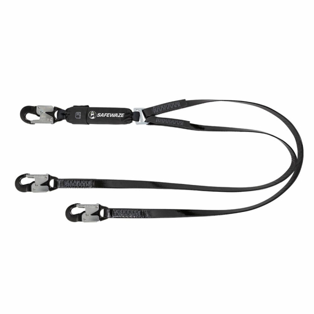 Safewaze, 024-2141, Pro-Shield 6' Energy Absorbing Lanyard: Dual Leg, Aluminum Snap Hooks
