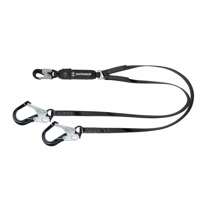 Safewaze, 024-2143, Pro-Shield 6' Energy Absorbing Lanyard: Dual Leg, Aluminum Rebar Hooks