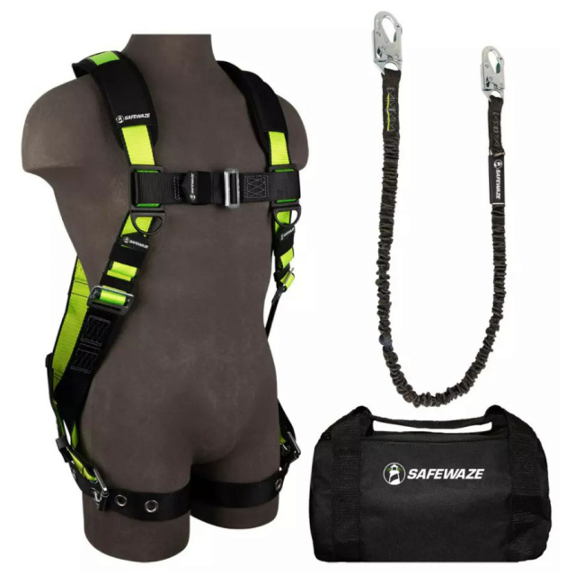 A professional combination of harness and lanyard for easy compliance conveniently packaged in a heavy duty carry bag.