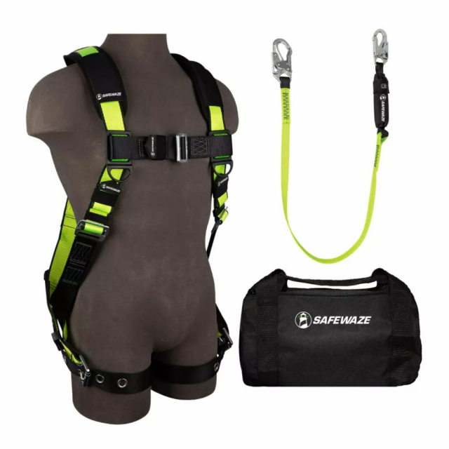 A professional combination of harness and lanyard for easy compliance conveniently packaged in a heavy duty carry bag.