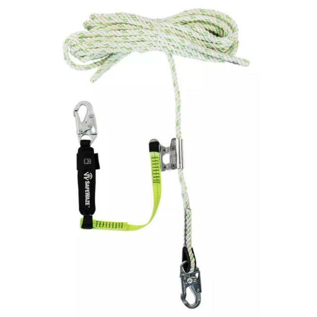 Safewaze, FS700-50GA-3E, 5/8" Rope Lifeline with Snap Hook and Rope Grab Attached w/ 3' Shock Lanyard