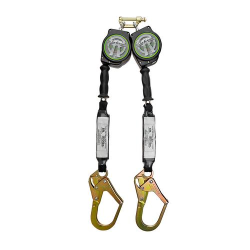 Safewaze, SW-8008-10-RBH-DL, 10' Cable Retractable Dual Leg w/ Energy Absorber and Steel Rebar Hooks