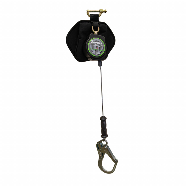 The SafeWaze leading edge cable retractable incorporates the energy absorber within a lightweight backpack style enclosure. This SRL is engineered for foot-level and sharp edge applications commonly found on construction job sites. It comes complete with a behind the web bracket, steel rebar hook, and a swivel top.