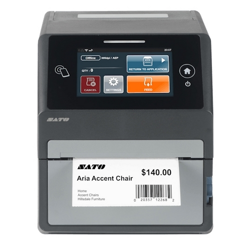 The SATO CT4-LX sets the bar for desktop barcode label printing. This 4-inch thermal printer offers features and functionality typically only found in industrial printer models but in a compact size. The CT4-LX is equipped with a full-color touchscreen display, the latest wireless connectivity options, and a patented label waste prevention feature. Easy to operate and maintain with user-replaceable printhead and platen roller to quickly keep your business up and running.