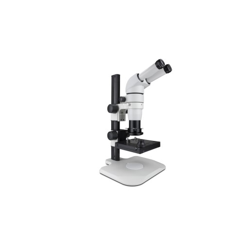 Scienscope, CMO-PK2-R3E, E-Series Microscope 20 Deg Binocular Head, 10x Eyepieces, 1:6 Zoom Body (0.8x-5x), 1x Objective Lens, dual focus ergo-track Stand with stage, and High Intensity LED Ring Light