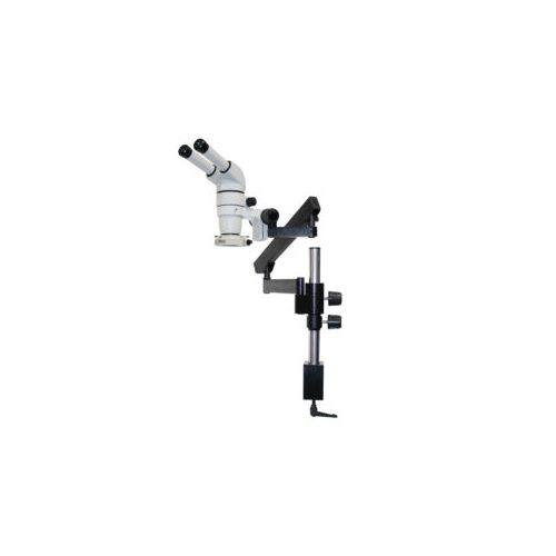 Scienscope, CMO-PK3-E1, E-Series Microscope 20 Deg Binocular Head with 10x Eyepieces, 1:6 Zoom Body (0.8x-5x), 0.5x Achromatic Objective Lens, Compact LED Ring Light, 76mm Focus Mount, and Articulating Arm Stand