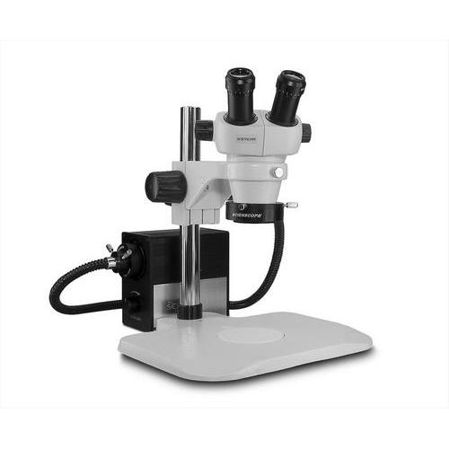 Scienscope, ELZ-PK1-AN, ELZ Stereo Zoom Binocular, 10x Eyepieces, Ergopost Stand with 76mm Focus Rack, LED Fiber Optic Illuminator, Fiber Optic Annular Ring Light Guide