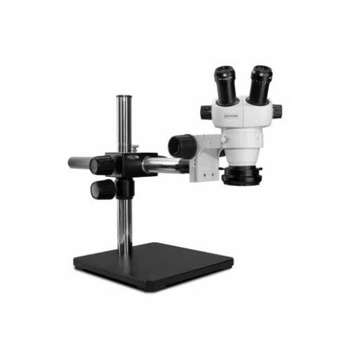 Scienscope, ELZ-PK5S-R3E, ELZ Microscope Stereo Zoom Binocular, 10x Eyepieces, Eye Guards, Single Arm Boom Stand with 76mm e-Arm, 0.5x Auxiliary Lens, Ring Adapter, Super-Bright Low-Profile LED Ring Light
