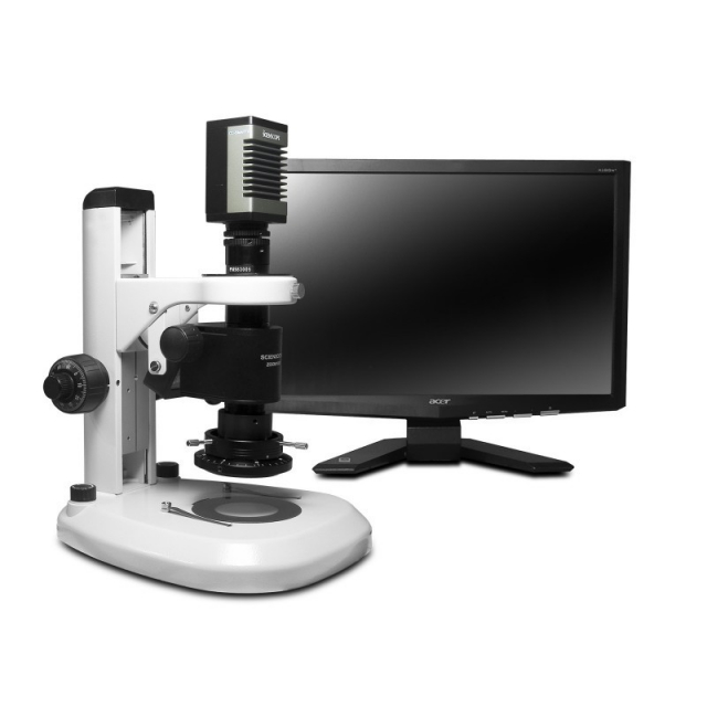 Scienscope, MAC-PK1-4KSC-R3, Macro Video Zoom Optics System, 65x Magnification with 8" Working Distance Extended Post Stand with High Intensity LED Ring Light with Polarizer
