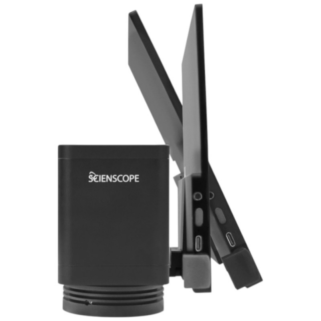 Scienscope, MAC-PK5S-TA1-4K, Touchscreen 4K UHD Camera with Integrated Optics and Diffused LED Ring Light and Single Arm Boom Stand