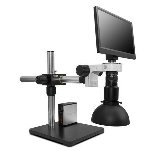 Scienscope, MAC3-PK5S-DM, Macro Video Zoom Optics (up to 40x Magnification with 8" Working Distance) on Single Arm Boom Stand, 1080p HD Camera and 12" LCD Monitor Combination with Diffused LED Dome Light