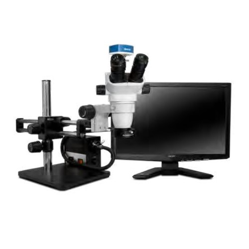 Scienscope, SZ-PK10-R3E, SZ Microscope Stereo Zoom TRUE Trinocular, 10x Eyepieces, Eye Guards, Dual Arm Boom Stand with 76mm e-Arm, 0.5x Auxiliary Lens, 0.5x Video Coupler, 8 Point LED Ring Light