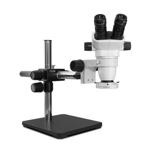 Scienscope, SZ-PK5S-E1, SSZ-II Stereo Zoom Binocular, 10x Eyepieces, Single Arm Boom Stand with 76mm E-Arm, 0.5x Auxiliary Lens, Ring Adapter, Compact LED Ring Light (IL-LED-E1)