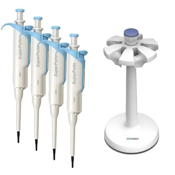 Scilogex, 714510B2, SuperPette Pipettor Starter Kit-2 (0.5-10ul, 2-20ul, 20-200ul, 100-1000ul) with Carousel Stand