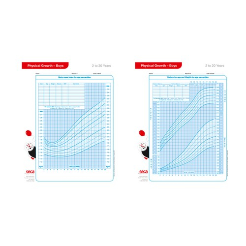 Growth charts. Growth charts for boys (blue) are the fast and convenient way to track length/height, weight, head circumference and Body-Mass-Index percentiles by age. Plot children from 2 to 20 years of age.