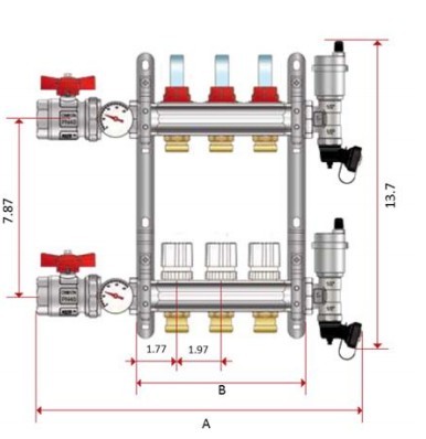 - Temperature gauges on supply and return manifolds: Ensure proper supply temperature and evaluate heat loss at the return manifold.
