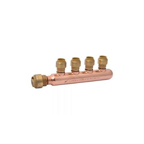 The SharkBite manifold with push-fit branches serves as a central distribution fitting with various outlet ports to supply multiple water lines. They eliminate extra connections and are particularly useful in areas where water service is concentrated such as bathrooms and kitchens. The push-to-connect design makes installation much faster and easier, and is compatible with any combination of Copper, PEX, CPVC or PE-RT pipes.