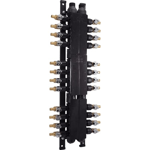 Similar to an electrical breaker box, allows for central control for all water lines throughout the home. Designed for use in a PEX system. Certified for use in potable water systems.