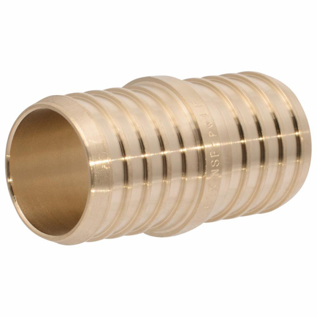 The SharkBite PEX Barb Reducing Coupling is made of a lead-free DZR brass, and is an easy to install, low-cost solution to connect to PEX tubing. These fittings allow for you to reduce pipe size with one fitting. The SharkBite PEX Barb fittings are compatible for potable water distribution and hydronic heating applications.