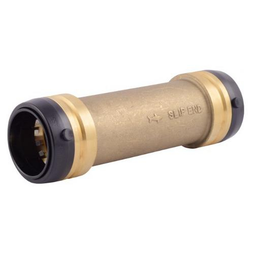 The SharkBite Large Diameter Slip Coupling is a plumbing repair fitting that allows you to make quick, easy repairs to Copper, CPVC, and HDPE pipe. This fitting allows up to 2 inches of damaged pipe to be removed and repaired. When making a repair, simply cut out a section of pipe no greater than 2 inches, and connect the slip end of the fitting onto one side. Then, take the Demount Clip (not includes) and slide the slip end of the fitting along the pipe to connect the other pipe. The slip coupling is particularly useful for burst or frozen pipes.
