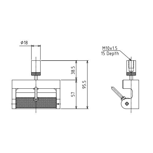 SHIMPO's Fabric Grip attachments are eccentrically mounted and contain serrated roller grips that allow for self-tightening of specimens up to 3" (76.20 mm) wide and 0.25" (6.4 mm) thick. Grips and attachments sold individually (not in pairs). Fabric Grip, M10 Thread