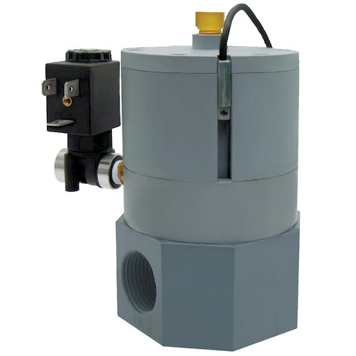 The Spartan Scientific APVS15 is an inert gas/spring operated, Single Acting Normally Closed, or Double Acting media compatible diaphragm valve designed for control of high purity, aggressive and corrosive liquid chemical media. With a small overall footprint, and low dead volume, the APVS15 features CPVC bodies, and FKM, EDPM and NBR elastomers to control orifice sizes 16mm and 20mm which afford Cv ratings of 4.70 and 10.9 that far exceed competitive valves of this type. Pressure ratings go from 10 to 100 psi depending on orifice size and each valve is tested to bubble tight standard ANSI FCI 70-2 Class VI. The APVS15 can be controlled by proven Spartan Scientific 3-way solenoid pilot valve which enhances operation with manual override and indicator lighted connector options. The Normally Closed version features an optical position indicator showing valve open condition. The APVS15 is used where sampling, draining, or transferring process fluid are performed. A Normally Open version can be made using a Normally Open pilot valve. In the case of pilot gas failure, the valve will fail closed. In the case where electric power is lost but pilot gas remains, the valve will remain open. An optional magnetic piston is available for end of stroke sensing when combined with the additional valve position sensor.