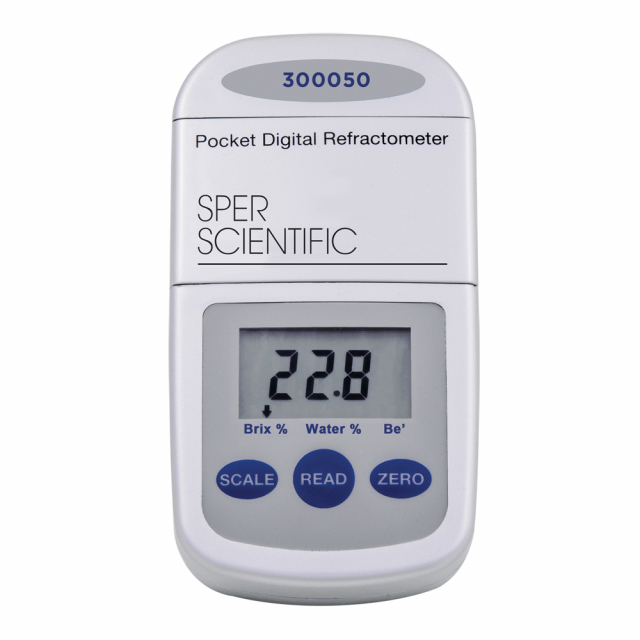 Measure concentrations of be', brix, and water. As small, light and simple to use as a optical refractometer, but with the precision of a digital readout. Reads samples as small as 1 ml. Sample temperature is initially displayed on the large LCD followed by the measurement results. The sophisticated microprocessor provides automatic calibration, automatic temperature compensation and automatic shutoff (after 3 minutes). A sturdy water resistant case protects the electronics from wet environments and makes for easy clean ups. Features one button calibration to distilled water and indicates when the battery should be replaced (8000 readings).