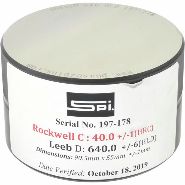 SPI, 20-382-8, Hardness Calibration Test Blocks; Block Type: Test; Scale Type: Leeb D; Minimum Hardness: 40 HRC; Maximum Hardness: 45 HRC; Hardness Range Description: Mild