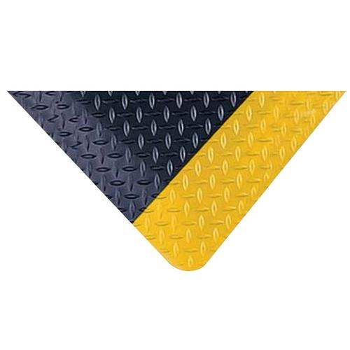 9/16" Economy Diamond Plate, these mats have a diamond embossed surface, which is easily cleaned and adds additional slip resistance vs. ordinary mats. They withstand heavy use, while their specially formulated blown-vinyl sponge base reduces standing worker fatigue.