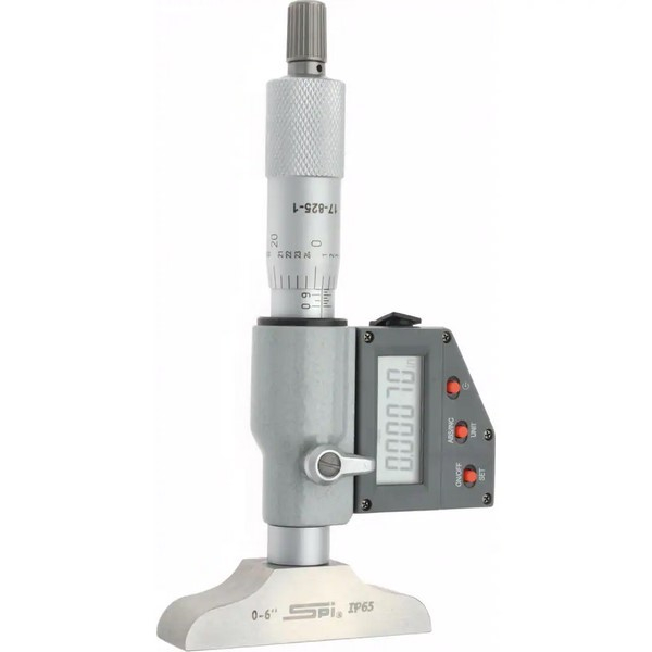 SPI, CMS160809182, 0 to 150mm Range, 2-1/2" Base Length, 6 Rods, Ratchet Stop Thimble, Electronic Depth Micrometer