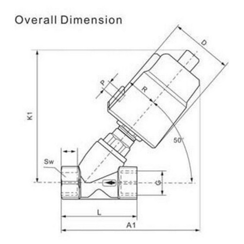 1-1/2" NPT Single Acting 316 Stainless Steel Angle Seat Valve with PTFE Seal and 80mm Air Actuator