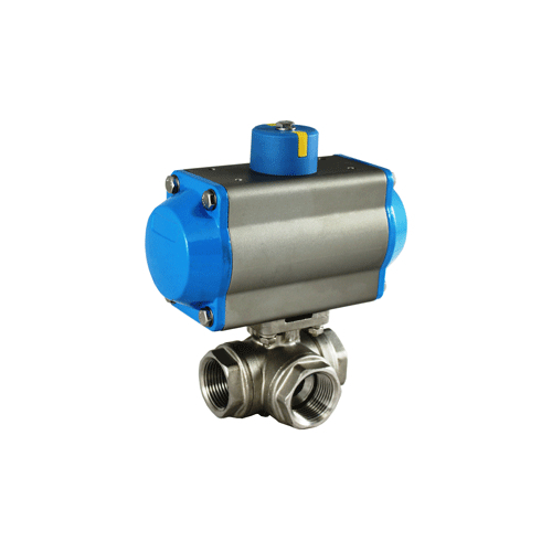 STC, KS 1-O, KS 1" NPT 316 SS 3 Piece Single Acting Rotary Pneumatic Actuator Ball Valve
