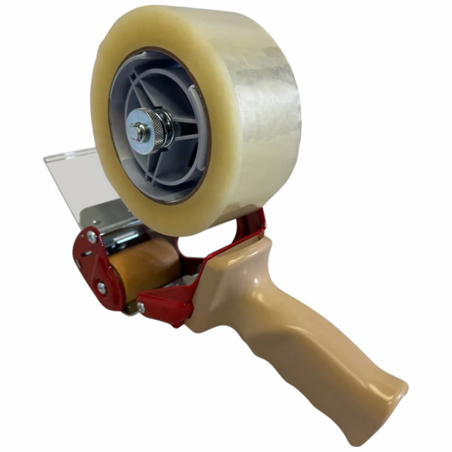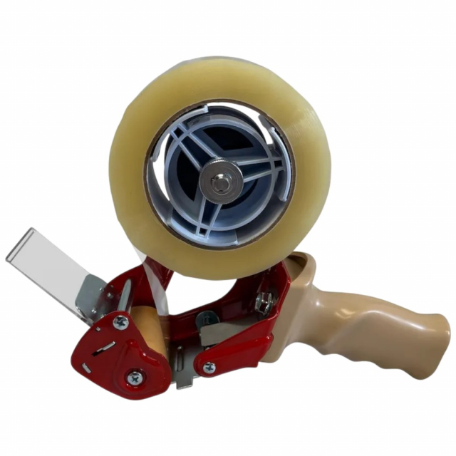 All steel, heavy-duty tape gun with retractable blade for operator safety and an adjustable brake. This dispenser has a molded finger grip handle for operator comfort, all-natural rubber roller, a heavy-gauge steel blade, and is designed for tapes up to 2 inch wide.