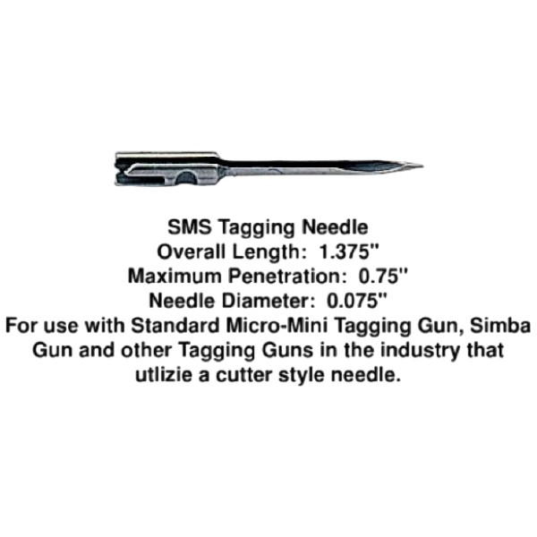 The Simba SMS Standard Tagging Needle is designed for use in the Micro-Mini Standard Tagging Tool Style #Micro-S and the Simba Tagging Tool. This needle is machined from solid hardened steel rod.