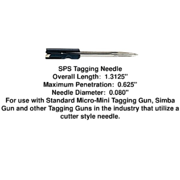 The Simba SPS Standard Tagging Needle is designed for use in the Micro-Mini Standard Tagging ToolStyle #Micro-S, Simba Tagging Gun Style #Simba-S, and other standard tagging tools that utilize a needle with an integrated cutter.