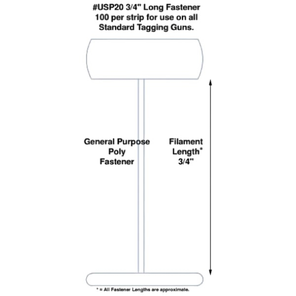 Tach-It #USP-20 Micro-Spaced General Purpose Tagging Fastener for use in most standard tagging tools including #TI2S Standard Tach-It 2 Tool, Micro-S Micro-Mini Standard Tagging Tool, and Simba Standard Tagging Tool.