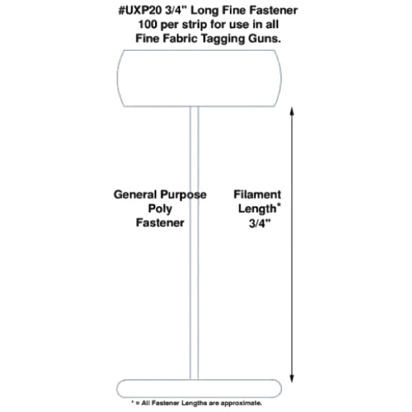Tach-It #UXP-20 Micro-Spaced General Purpose Tagging Fastener for use in most fine fabric tagging tools including TI2F Fine Tach-It 2 Tool and Micro-F Micro-Mini Fine Tagging Tool.
