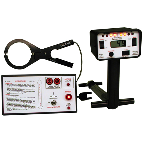 The transmitter induces a unique signal onto the line or conduit being traced. It can be connected to the line by clip leads, clamp or inductive coupling. Inductive coupling sends the signal to th eline so there is no physical connection to the conductor. The transmitter indicates low battery, power and live line connection. The product is rated for electrical use and be directly connected to a maximum fo 600VAC.