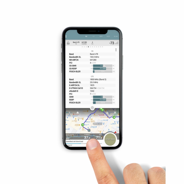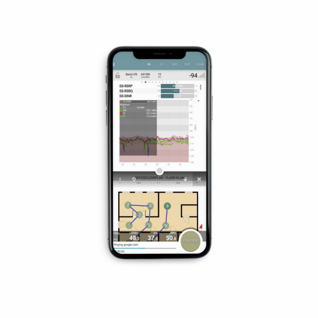 Airscout Mobility helps network engineers optimize the performance of their wireless networks by providing software that measures RF metrics directly from your mobile phone. The solution provides full data throughput and coverage mapping reports for all 3G/4G/5G wireless networks, as well as Wi-Fi and Bluetooth, so users can validate proper over-the-air network performance. The software runs on your Android OS based mobile phone. Optionally, one can be included as part of the solution. Multiple devices can share one license, and license terms are flexible from annual licenses down to single-day usage.