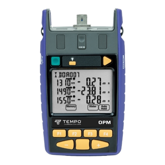 A fully featured Hand Held Optical Power Meter used for testing fiber optic communications systems. Superior measurement confidence is achieved through a combination of excellent basic accuracy, intuitive use, and rugged reliability. Options cover power levels from +33 to -70 dBm, all usefulwavelengths, many connector styles including duplex / ribbon, and large core POF fiber.