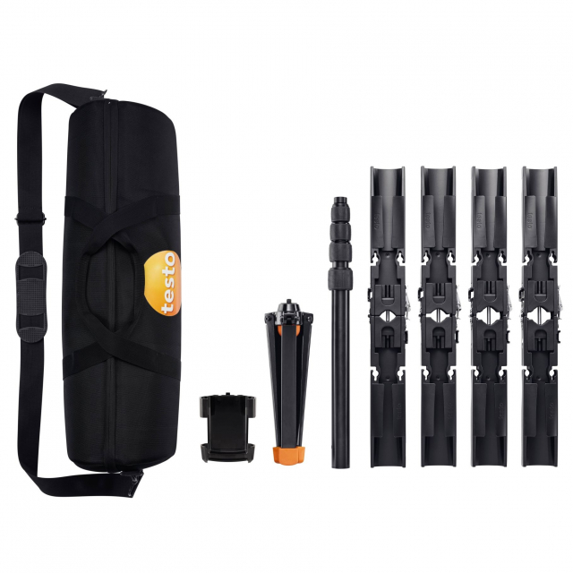 Ideal for standard-compliant IAQ and comfort measurements: use the measuring tripod for IAQ and comfort level measurements to position the compatible measuring instrument and the probes (please order separately) in compliance with the standards at all times.