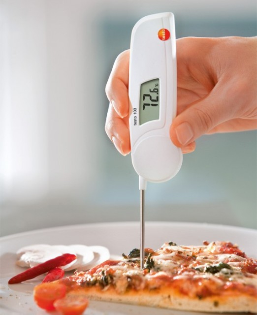 The testo 103 food thermometer is the smallest folding food probe thermometer in its class. At a little over 4 in. it is so small it fits in any shirt or trouser pocket. And because the probe can be folded away, it can't break off or cause any harm or damage.