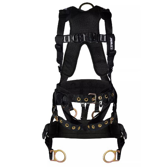 The tower tracx harness from the tracx family has all the same performance characteristics with the addition of design features specific to tower, mast, and aerial climbing industries. This product is intended for technicians and professionals who spend the majority of their working time climbing up and down vertical structures.
