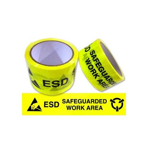 AM3602 ESD Aisle Marking Tape is a bright yellow vinyl floor tape that has bold black lettering with an ESD symbol. The print on this tape reads