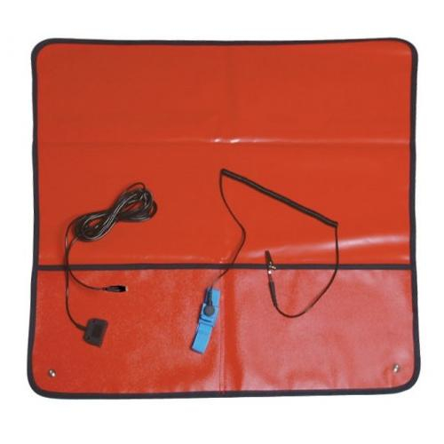 Transforming Technologies, FSM2424R-F, 2' x 2' Field Service Kit, Red, 2 Female 10mm Snaps, Wrist Band Set, Ground Cord