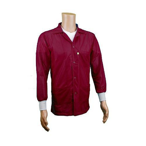 JKC 9025MR provides high quality ESD protection and made from a light-weight blend of 90% polyester and 10% conductive fibers. It features a snap front closure with a lapel-style collar and also has knitted wrist and three roomy patch pockets.