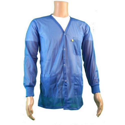 The Transforming Technologies JKV 8824 LB ESD-Safe V-Neck Jacket (JKV Series 8812) feature a patented hip-to-cuff feature for hands-free grounding. These garments are fabricated from light weight 88% polyester and 12% carbon fabric for unmatched operator comfort. Superior workmanship provides reliable panel to panel continuity. The JKV Series 8812 jackets maintains consistent continuity readings for up to 100 wash cycles.