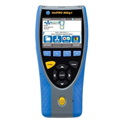 TREND Networks, R152003, UniPro MGig1 Pro Gigabit Ethernet Multistream Bidirectional Transmission Tester with Single Copper and Optical Ports, MPLS